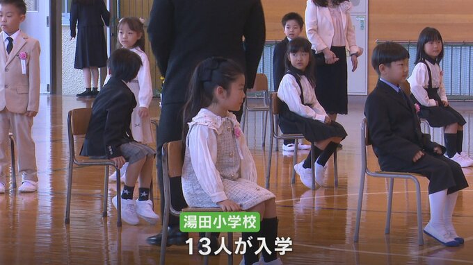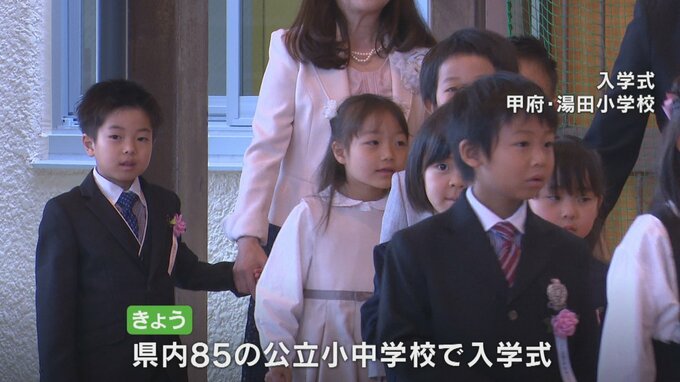 このうち甲府市の湯田小学校には13人の児童が入学し、それぞれが緊張した面持ちや期待を膨らませた笑顔で入学式に臨みました。