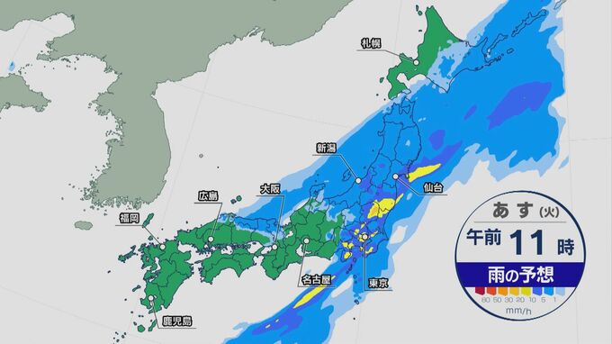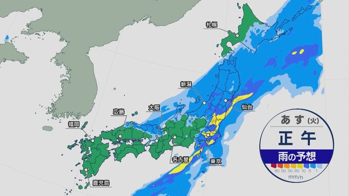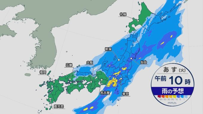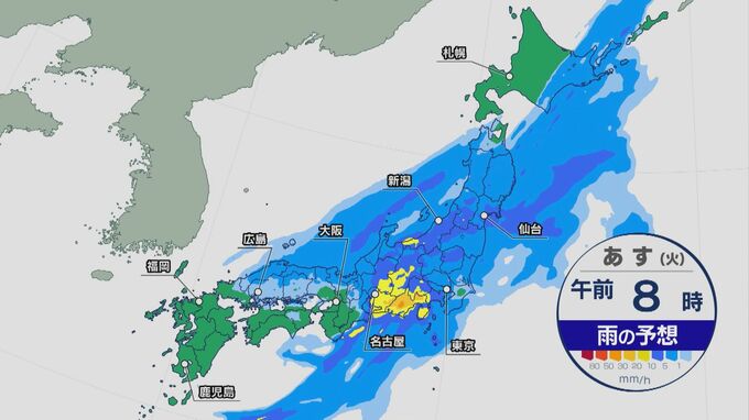 気象庁によりますと、あす(9日)は明け方から昼過ぎにかけて、関東甲信地方で雷を伴った激しい雨が降り、大雨となる所があるでしょう。土砂災害、低い土地の浸水、河川の増水に注意・警戒が必要です。
