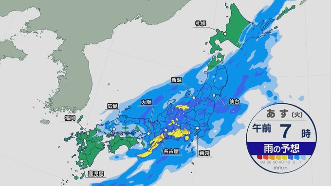 伊豆諸島南部ではあす夕方にかけて、関東甲信地方の広い範囲ではあす明け方から夕方にかけて、土砂災害、低い土地の浸水、河川の増水に注意・警戒してください。雨雲が予想以上に発達したり、停滞した場合には、警報級の大雨となる可能性があります。