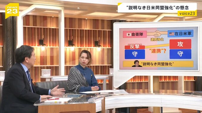 ざっくり話しますと、1年半前に日本政府は“反撃能力”、これまで敵基地攻撃能力と言われてきたんですが、それを認めようという文書を作ったんですね。これまで日米安保というのはアメリカの“攻めと守り”、日本の“守り”という構成でしたが、日本にも反撃能力という“攻め”の一部を認めて、日米が“攻め”ということで連携しようという、そういう新しい枠組みになりましたので、これは今までなかったことですよね。もちろん中国の軍事的台頭がありますから、ある程度の備えは必要なんですけど、こうした構図に対して岸田さんからの説明はほとんどないわけですよね。ですから、これは“説明なき同盟強化”と言ってもいいと思いますね。