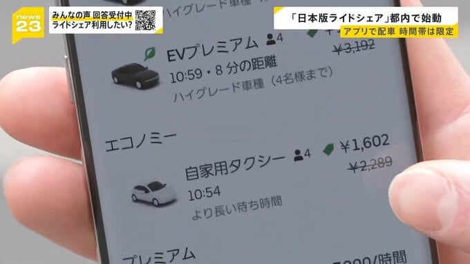 「(車のフロント部分に)『ライドシェア』と書いてありますね。見た目は乗用車に見え、白ナンバーですが、『ライドシェア』という表示がありました」