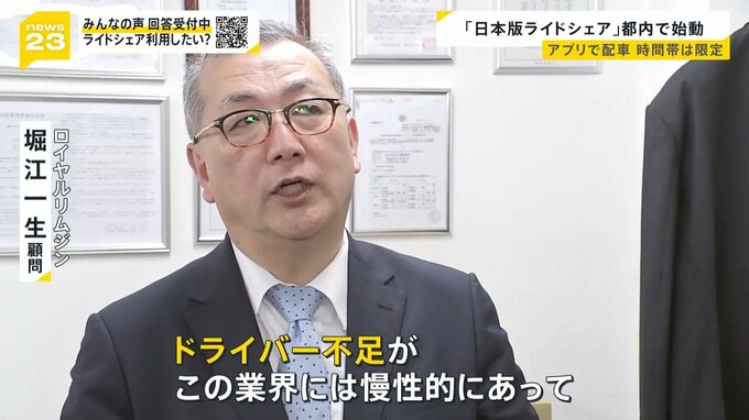 東京都江東区にある「ロイヤルリムジン」では、初日の8日、ライドシェアの許可書「有償運送許可書」が手元に届いたと言います。