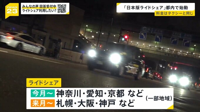 ライドシェアは、4月に神奈川、愛知、京都などの一部地域、5月には札幌、大阪、神戸などの一部地域でも順次始まる見通しです。