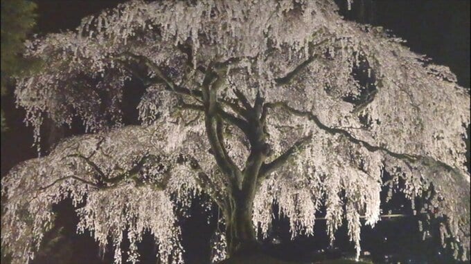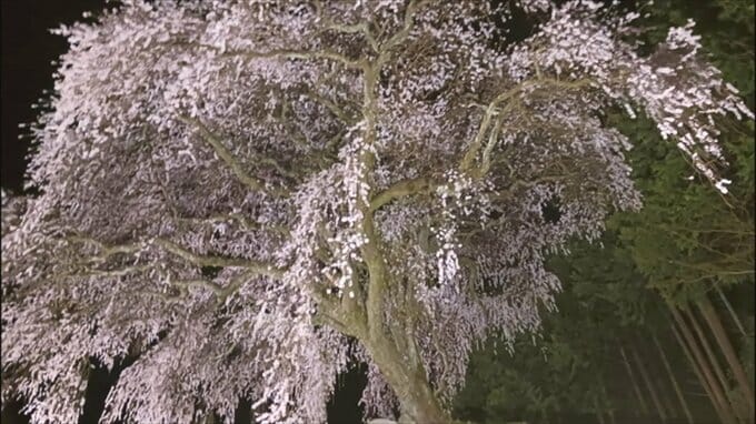 また、地元の保存会が大切に手入れをしているシダレザクラで、開花の時期に合わせて毎年ライトアップを行っています。
