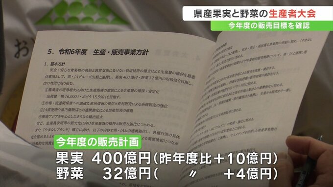 そして今年度は県内JA全体で果実は昨年度より10億円多い400億円、野菜は4億円多い32億円と、目標とする販売計画を発表しました。