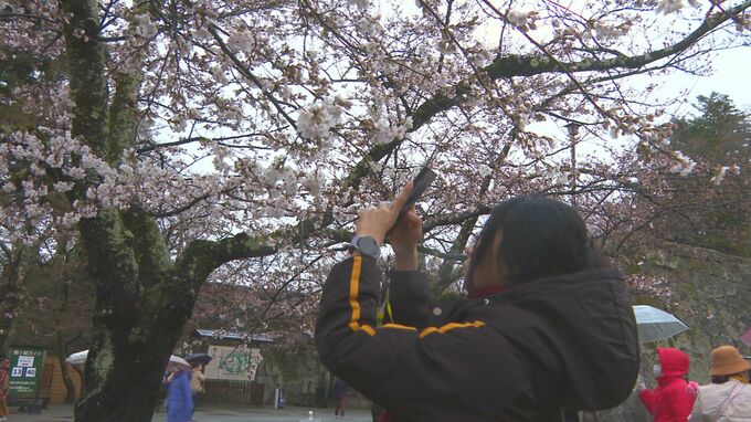 9日、およそ1000本のサクラが咲く会津若松市の鶴ヶ城公園で、ソメイヨシノの開花が発表されました。今年は3月下旬に雪が降るなど、気温が低い日が続いたため、例年と比べ2日遅い開花です。今はまだ2分咲きですが、サクラを見るために訪れた海外からの観光客でにぎわっていました。