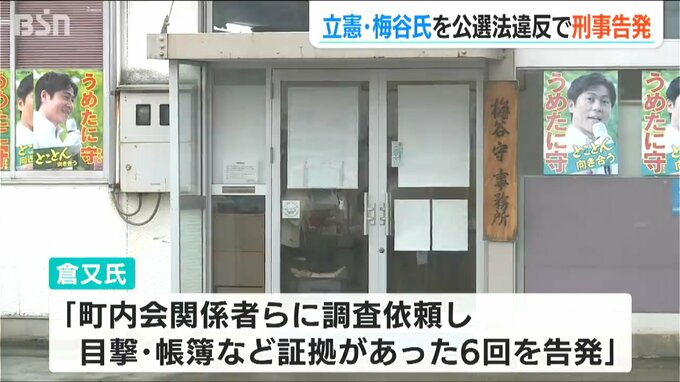 告発状によりますと、旧新潟6区選出の梅谷守衆議院議員は去年7月ごろから今年2月ごろまでの間、自身の選挙区である上越市内の町内会など5団体に対し、合わせて6回にわたり日本酒や現金を供与した公職選挙法違反の疑いがあるとしています。