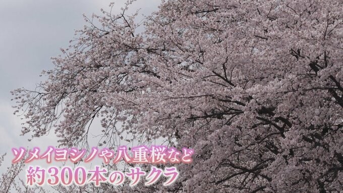 公園の敷地内にはソメイヨシノや八重桜など樹齢50年以上の約300本のサクラが植えられています。