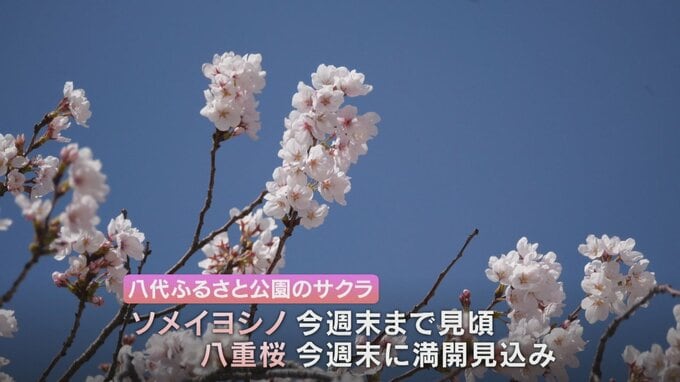 八代ふるさと公園のサクラは、ソメイヨシノの見頃が今週末まで、八重桜は今週末には満開となる見込みだということです。