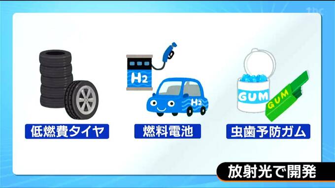 国内には兵庫や愛知などに9つの放射光施設があり、これまで低燃費タイヤや車に使う燃料電池などの開発で利用されました。また、歯の構造を分析して虫歯の予防効果があるガムを開発した事例もあります。