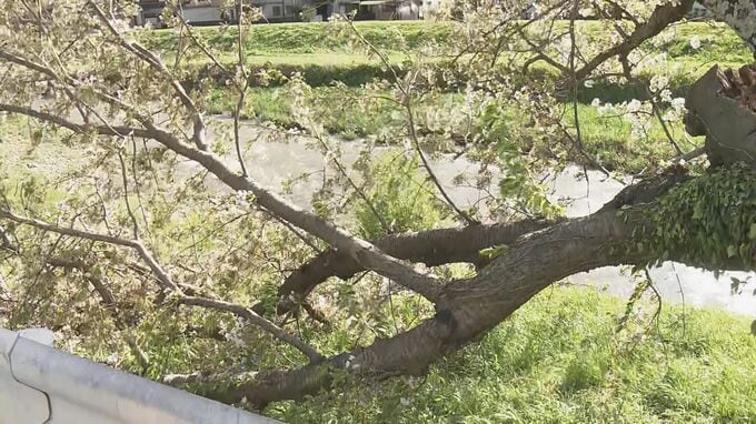 4月9日、愛知県豊川市の川沿いで、桜の木が倒れているのが見つかりました。