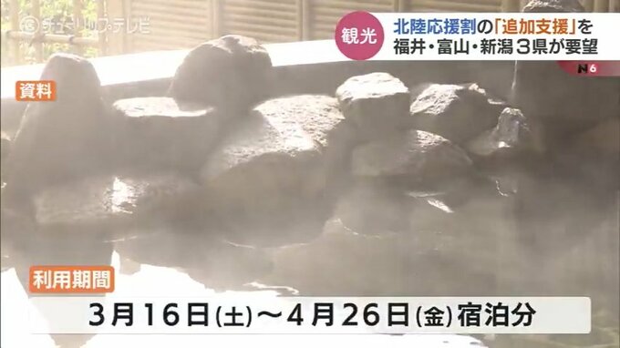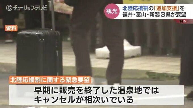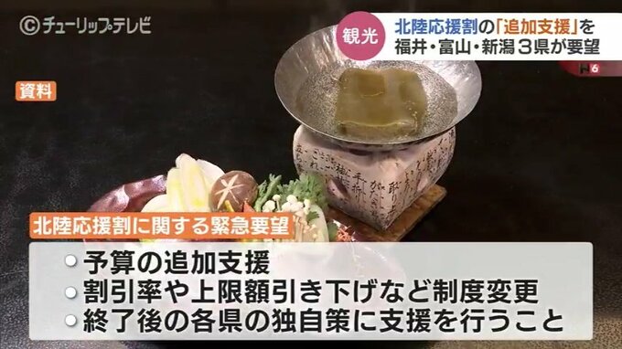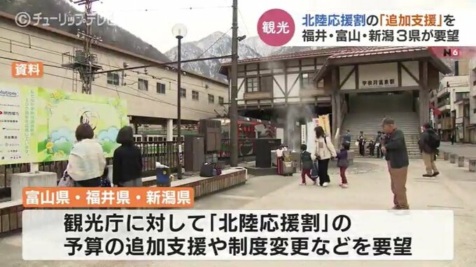 能登半島地震の影響を受けた北陸の観光業を支援する北陸応援割が4月末に終了するのを前に、富山県など被災地・3県が予算の追加などを観光庁に要望しました。