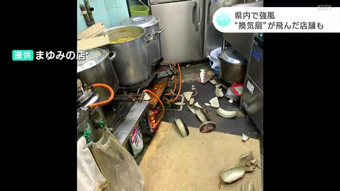 「すごい風やねと言っていた矢先にものすごい風が吹いてきて、換気扇がいきなり止まったかと思うたら、換気扇がはずれて目の前が真っ白になって、(鍋の)割れた破片がスープの中に入ったので、全部破棄しないといけないので、(営業再開は)あさってからになると思います」
