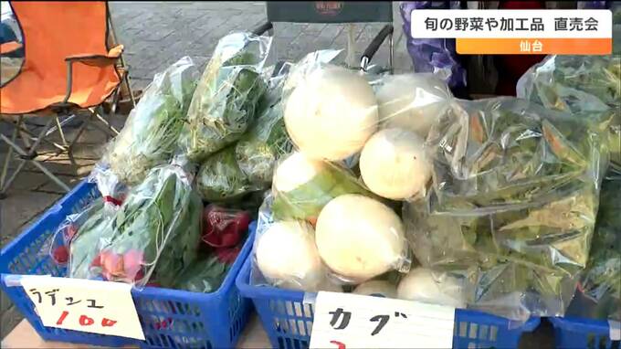 旬の野菜や加工品を味わってもらおうと、仙台市内の生産者による直売会が開かれました。