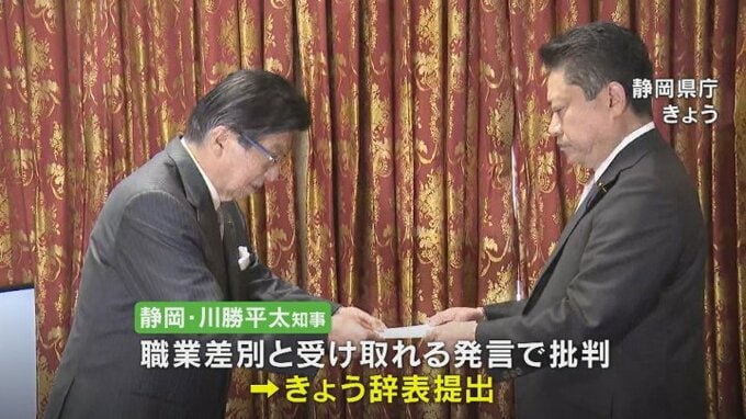 静岡県の川勝平太知事は職業差別とも受け取れる発言で批判を受け、10日に辞表を提出しました。