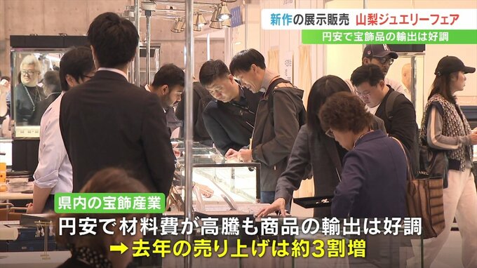 県ジュエリー協会によりますと円安の影響で材料費が高騰する一方、商品の輸出は好調で、去年の売り上げは前年より3割ほど伸びたということです。