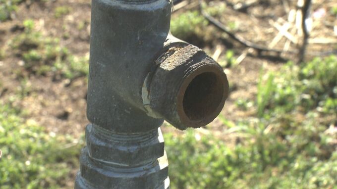 男性の畑では、2か所のポンプから金属製のバルブが盗まれていたということです。被害にあったポンプには、工具のようなもので切断されたあとが残っていました。