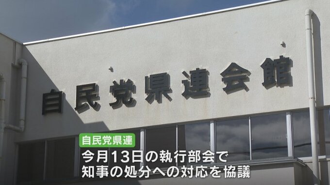 なお、自民党県連は4月13日の執行部会で知事の処分の対応を協議する見通しです。