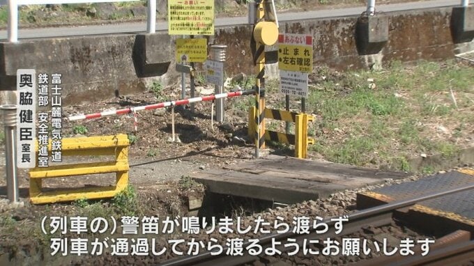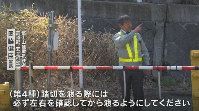「(第4種)踏切を渡る際には必ず左右を確認してから渡るようにしてください。(列車の)警笛が鳴りましたら渡らず、列車が通過してからわたるようにお願いします」