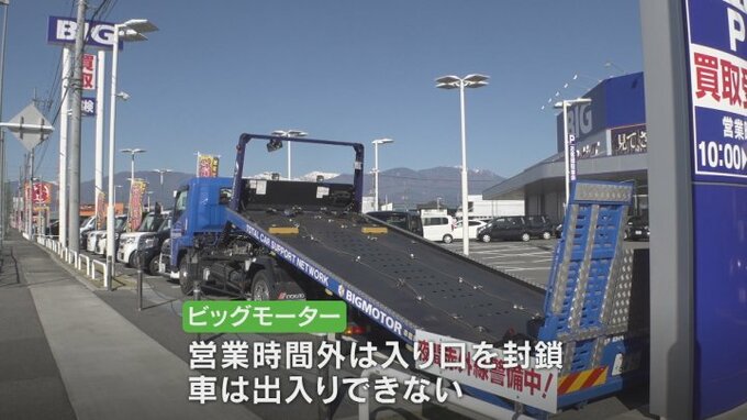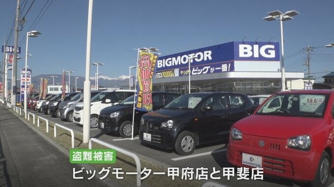 盗難の被害があったのはいずれも国道20号沿いにある甲府市住吉のビッグモーター甲府店と甲斐市宇津谷のビッグモーター甲斐店です。