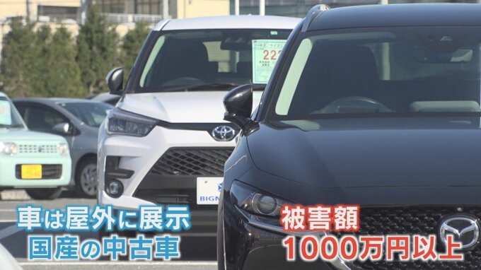 車はいずれも屋外に展示していた国産の中古車で被害額は1千万円以上にのぼるということです。