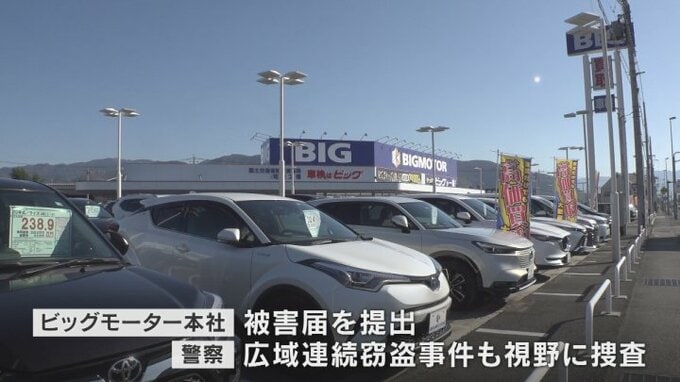 ビッグモーター本社は被害届を出し、警察は広域にわたる連続窃盗事件の可能性もあるとみて捜査しています。
