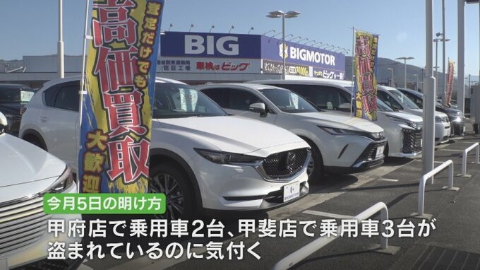 中古車販売のビッグモーターの山梨県内2店舗で車5台が盗まれたことが分かりました。