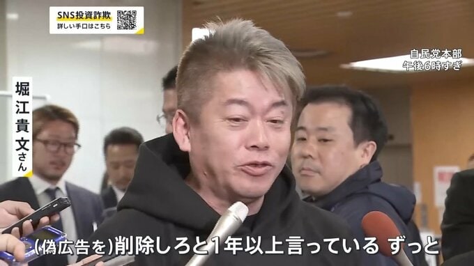 SNSで投資詐欺に誘導するための「偽広告」。なりすましの被害にあっている実業家の前澤友作さんと堀江貴文さんが10日、自民党の会合で対策強化を訴えました。