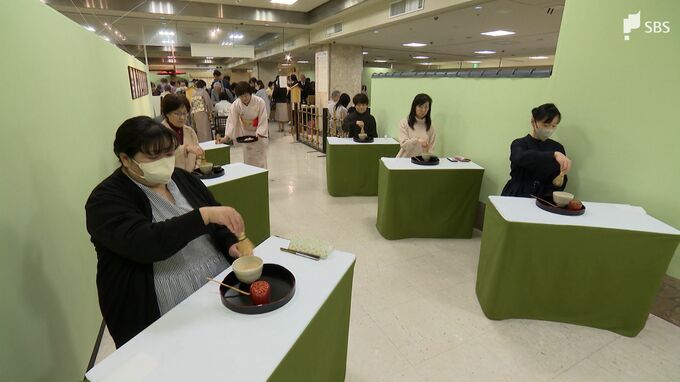 参加者は、会場の一角にできた茶席で抹茶や煎茶を味わい、それぞれの流派を体感しました。