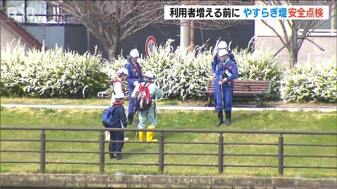 安全点検が行われたのは、信濃川沿いのやすらぎ堤です。11日、信濃川下流河川事務所と新潟市の職員らおよそ30人が点検しました。