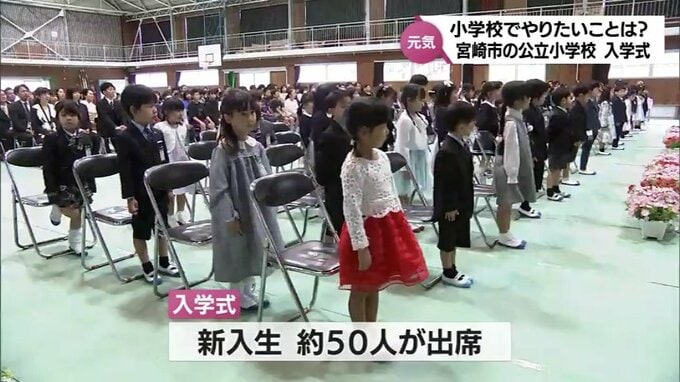 期待に胸を膨らませ学校生活がスタートです。宮崎市の公立小学校で入学式が行われました。このうち、小戸小学校の入学式には新入生およそ50人が出席。新入生1人1人の名前が読み上げられると、児童たちは、手を挙げ…