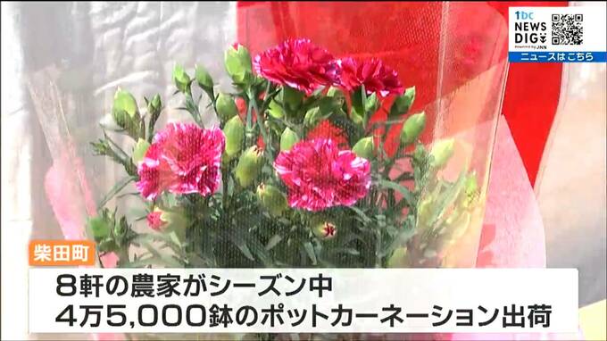 柴田町は、8軒の農家がシーズン中、4万5000鉢のポットカーネーションを出荷する東北有数の生産地です。