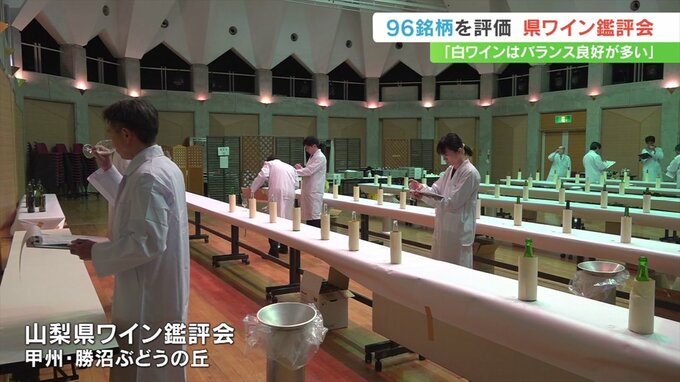 鑑評会は県産ワインの品質や醸造技術の向上に役立てようと、山梨ワイナリー協会が毎年開いているもので、販売価格3000円以下のワインが対象です。