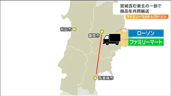 トラックドライバーの人手不足などが懸念される「2024年問題」に対応するためライバル同士がタッグを組みます。ファミリーマートとローソンは11日から、宮城を含む東北の一部地域で商品の共同輸送を始めました。
