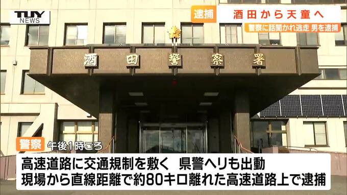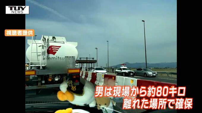 警察は逃走していた男を見つけ高速道路に交通規制を敷いたほか、県警ヘリも出動させ、現場から直線距離でおよそ80キロ離れた高速道路上で逮捕しました。
