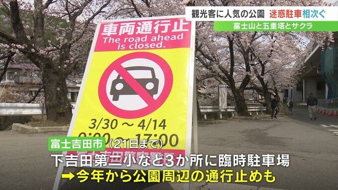 市は21日まで近くの小学校など3か所に臨時駐車場を設け、今年から公園周辺の道路を一部、車を通行禁止にしています。