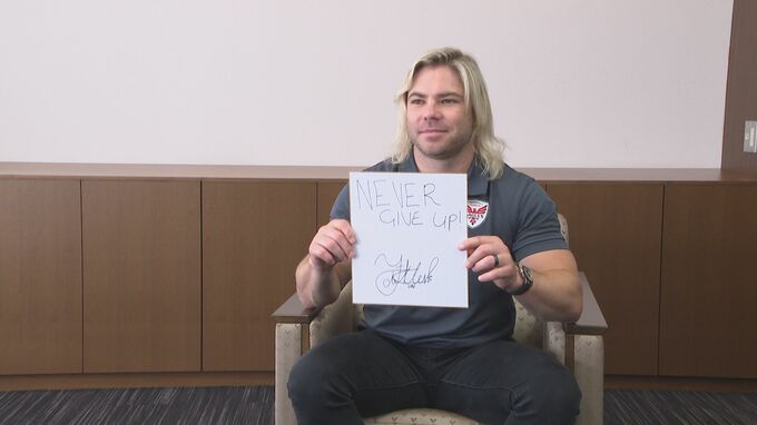 デクラーク選手が大切にしている言葉は「NEVER GIVE UP」といいます。