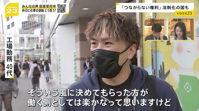 これも職場環境、立場、業界、さまざまでしょうね。日本でも、すでにつながらない制度を導入した企業があり、取材しました。