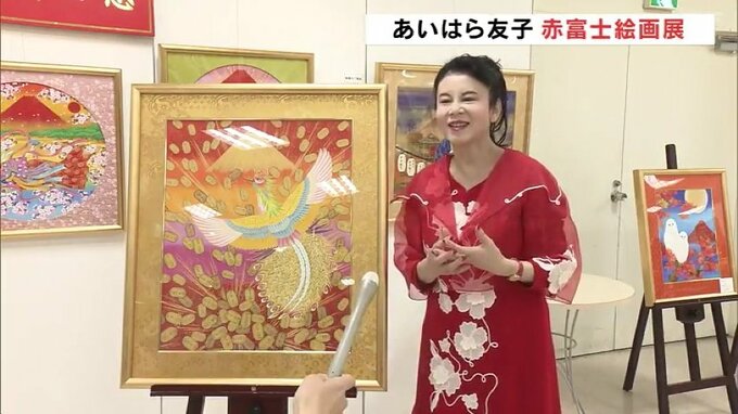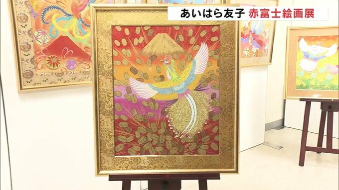 郡山市のうすい百貨店で開かれている「あいはら友子赤富士絵画展」では、女優で画家のあいはら友子さんが描いたおよそ50点の絵画を展示しています。
