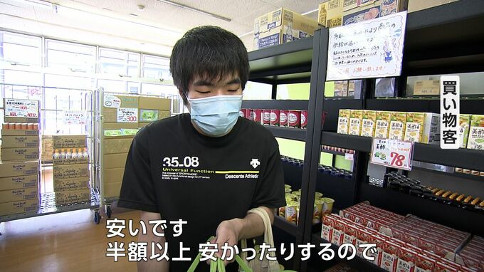 「安いですねぇ、半額以上安かったりするんで。(賞味期限切れた商品は?)大丈夫でした、おいしかったです」