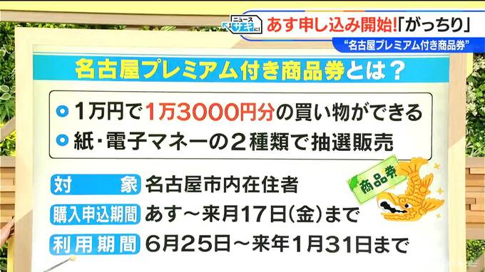 対象となる方は、名古屋市内に住んでいる方です。購入の申し込み期間は4月13日(土)から5月17日(金)までの約1か月。Webまたはハガキで購入の申し込みができます。実際に抽選で当たりましたとなりますと、商品券が利用できる期間が6月25日から来年の1月31日までとなります。