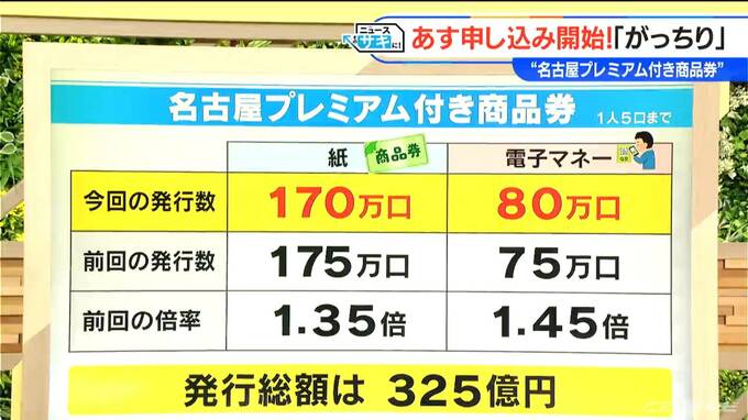 前回の倍率を見てみますと紙が1.35倍、電子マネーが1.45倍で、前回は電子マネーの方が倍率は高かったと。発行総額は、325億円ということです。1人最大5口まで申し込めるということです。