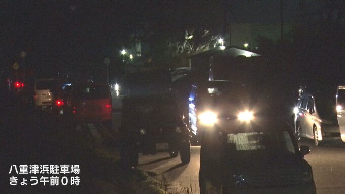 記者:「時刻はまもなく午前0時になるところですが、車が駐車場にどんどん入ってきます。駐車場には止めきれないので路上駐車されている方もたくさん見受けられます」