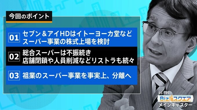 セブン&アイ・ホールディングスは10日、総合スーパー(GMS)のイトーヨーカ堂などのスーパー事業について、26年2月期までに黒字化を達成した上で、株式上場を検討すると発表しました。
