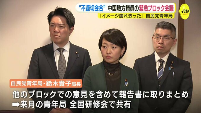 自民党青年局の緊急中国ブロック会議には、鈴木貴子局長など党本部と中国5県の青年局の地方議員など、約20人が参加しました。緊急の会議は、全国では近畿、関東に続いて3か所目です。
