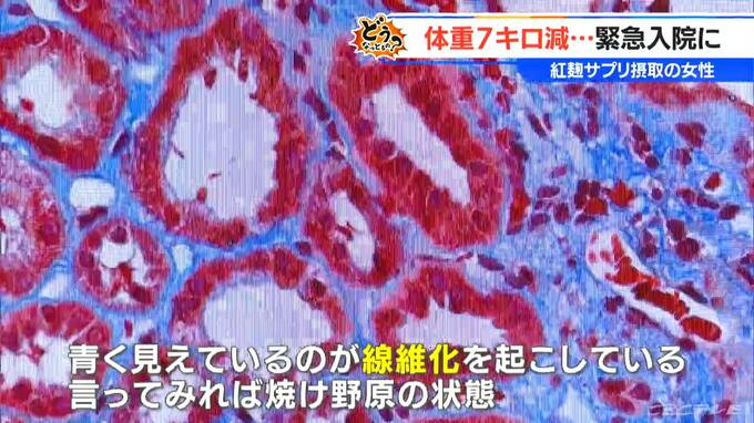 尿細管が青く染まり、広くダメージを受けていることが分かります。女性は緊急入院し、サプリの服用もやめて症状は改善に向かっているといいます。