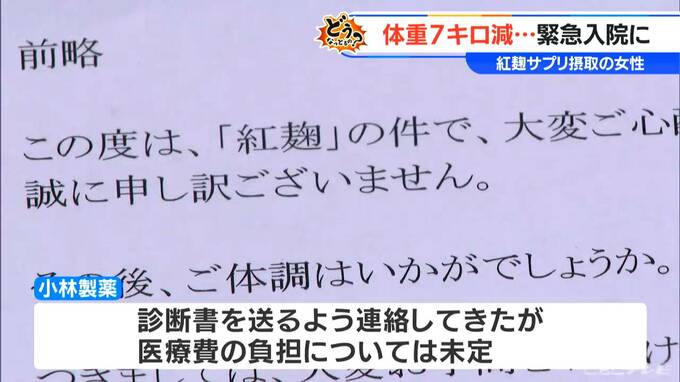 これまでにかかった医療費は20万円近く。小林製薬は診断書を送るよう連絡してきましたが、医療費の負担についてはまだ何も決まっていないと言います。