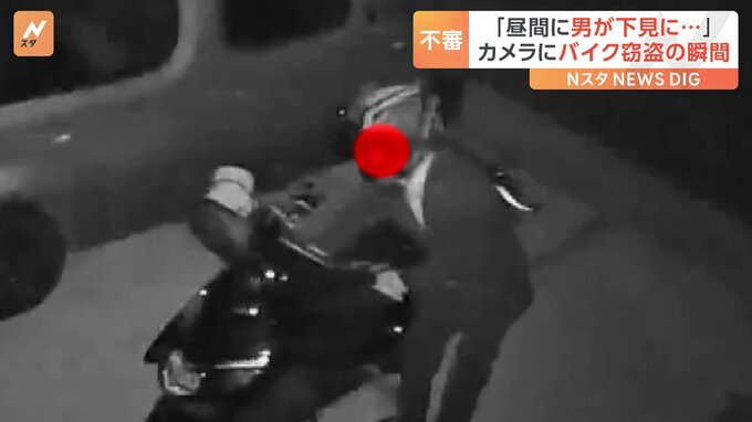 防犯カメラが捉えたバイクが盗まれる瞬間。直前まで不審な動きをする男の姿が…4月7日の午後11時15分ごろ、カメラは一台のバイクを写していました。そこへ、スーツ姿でヘルメットをかぶった人物がライトをつけると…