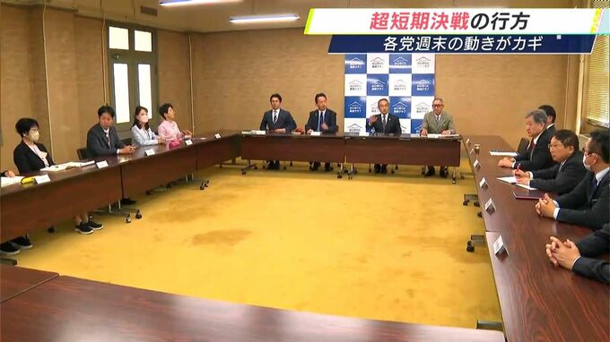 超短期戦となった知事選、各党、週末の動きがカギとなりそうです。
