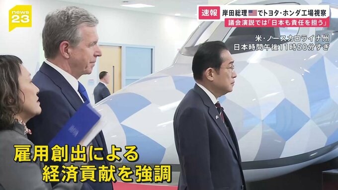 訪米中の岸田総理がノースカロライナ州でトヨタとホンダの工場を相次いで視察しました。日本企業がアメリカで雇用を生み出し経済に貢献していることを強調する狙いがあります。一方、米議会での演説や日米比3か国…